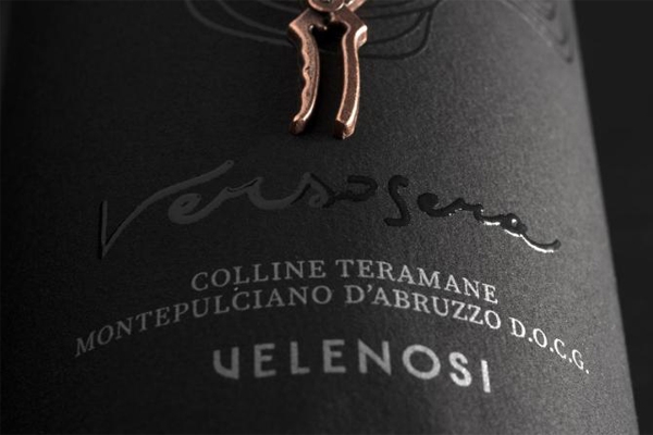 標簽使用天然棉制成的黑紙代表夜晚,粘在天鵝絨圓圈上,一邊是月亮,另一邊是葡萄酒。同時選擇天鵝絨的材料,以它的光滑度,暗示除了與黑葡萄的觸覺感覺及其優雅感。
