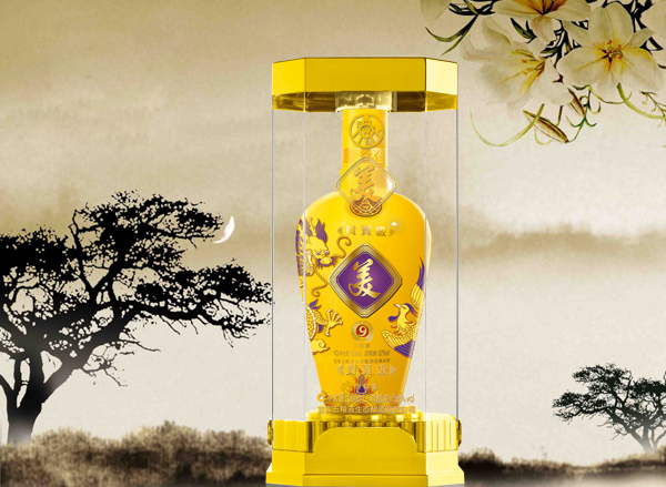 瓊漿高朋級(jí)飛黃騰達(dá)上大下小的錐形瓶體設(shè)想,加上水晶盒設(shè)想,簡(jiǎn)約而又不失富麗。