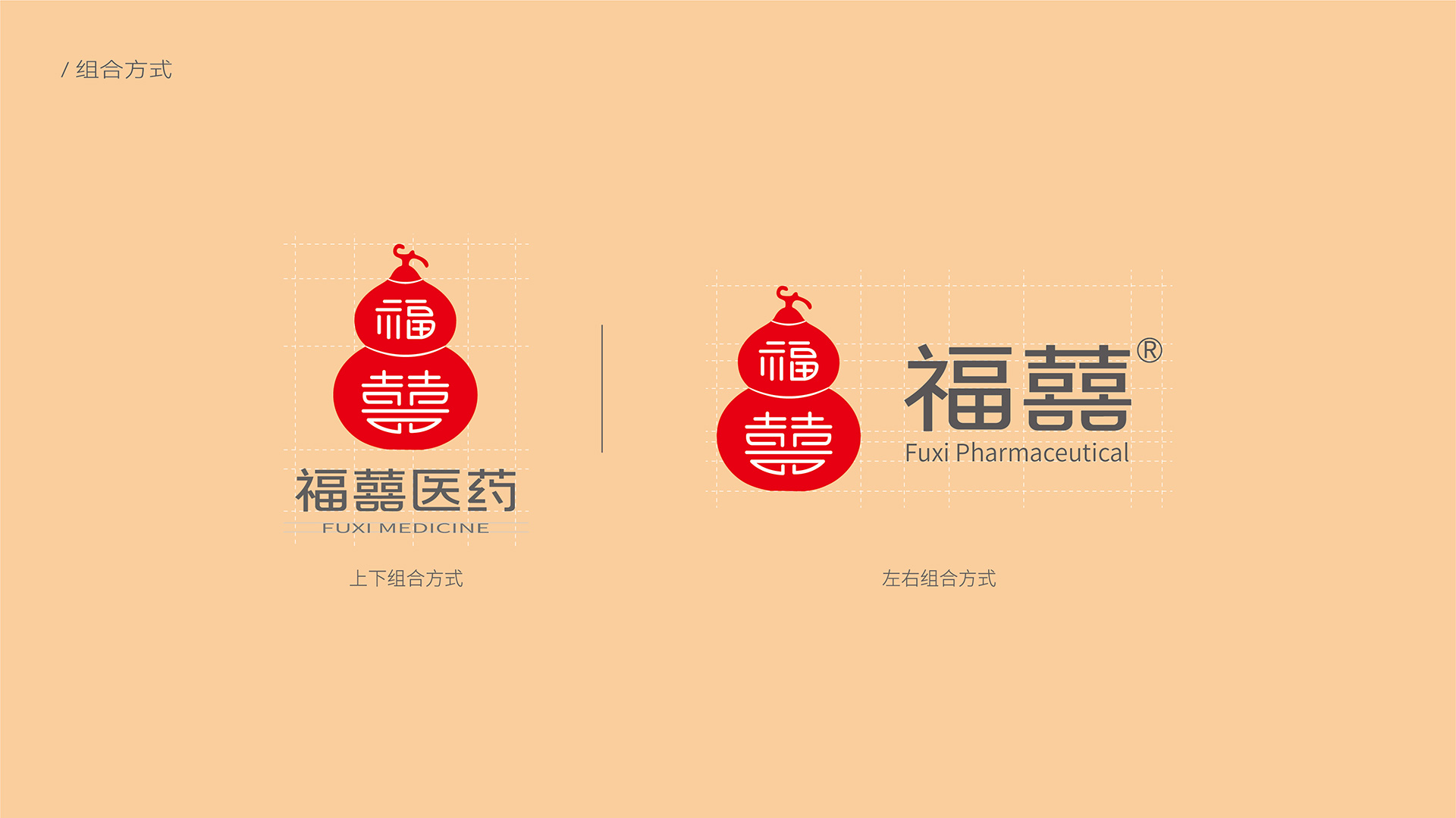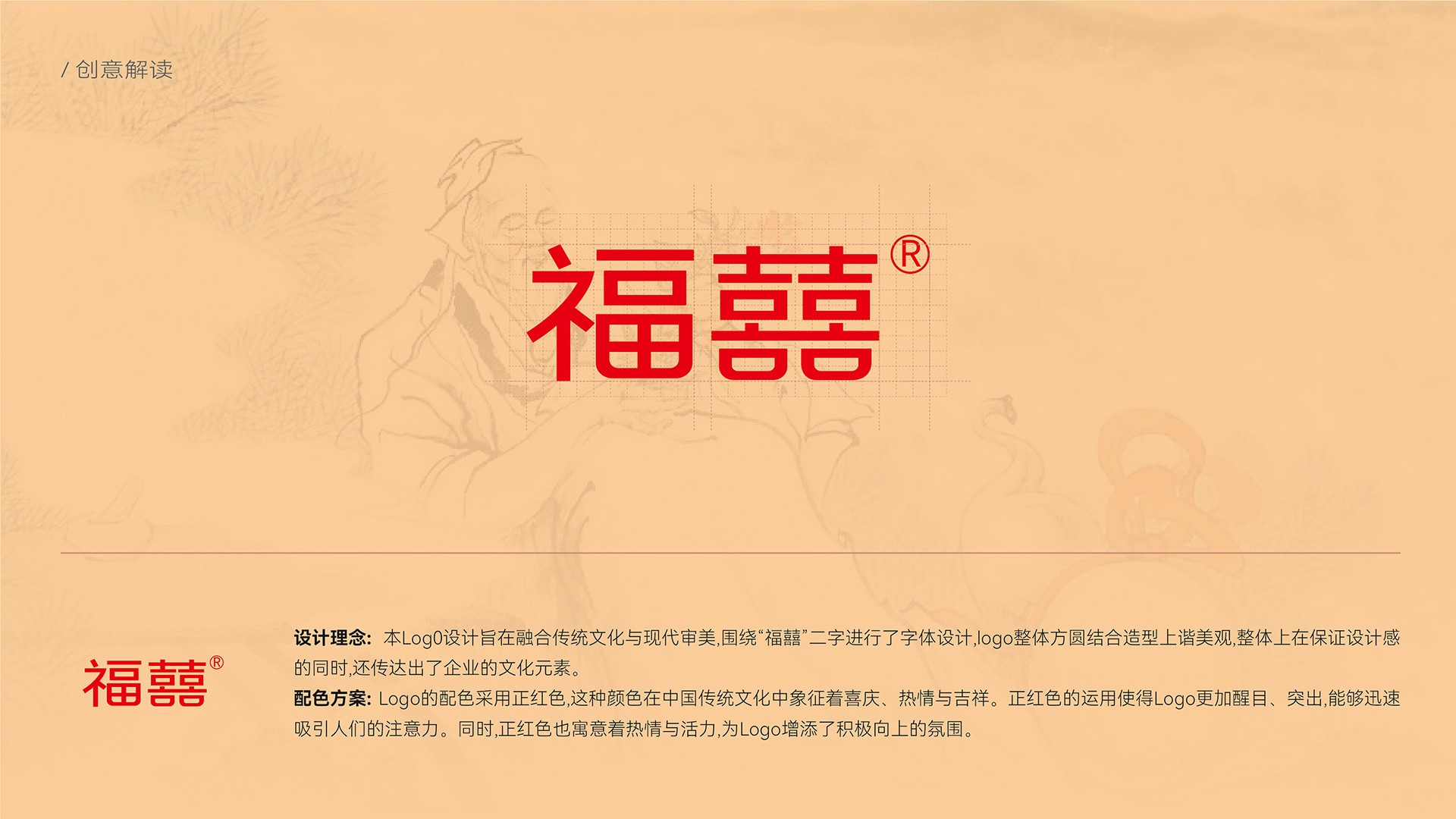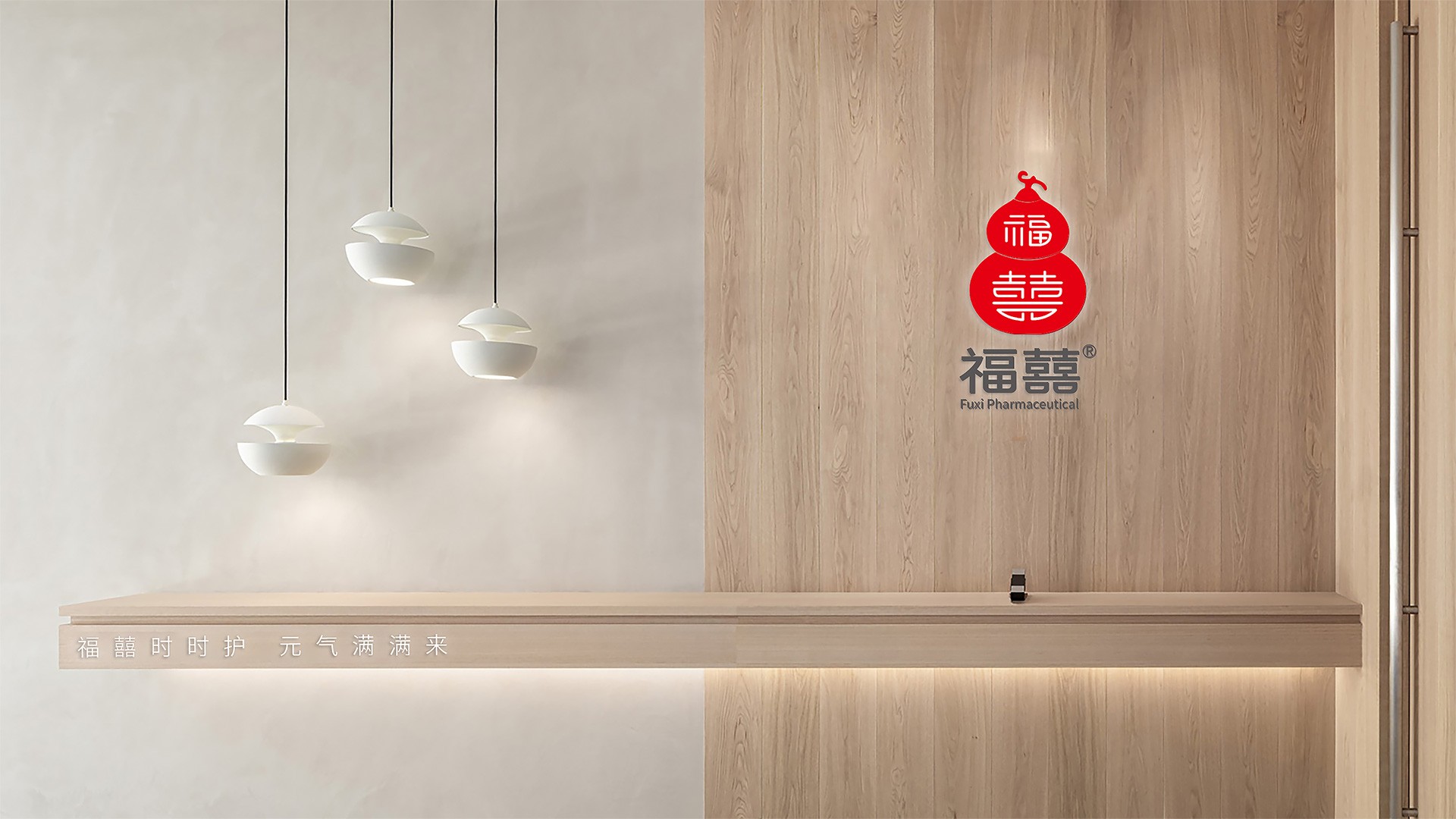 LOGO設(shè)計: 將“福囍”二字進行巧妙的圖形化融合設(shè)計,確保字體標識莊重、大氣且具有獨特性,體現(xiàn)醫(yī)藥行業(yè)的可靠性與“福喜臨門”的美好寓意。